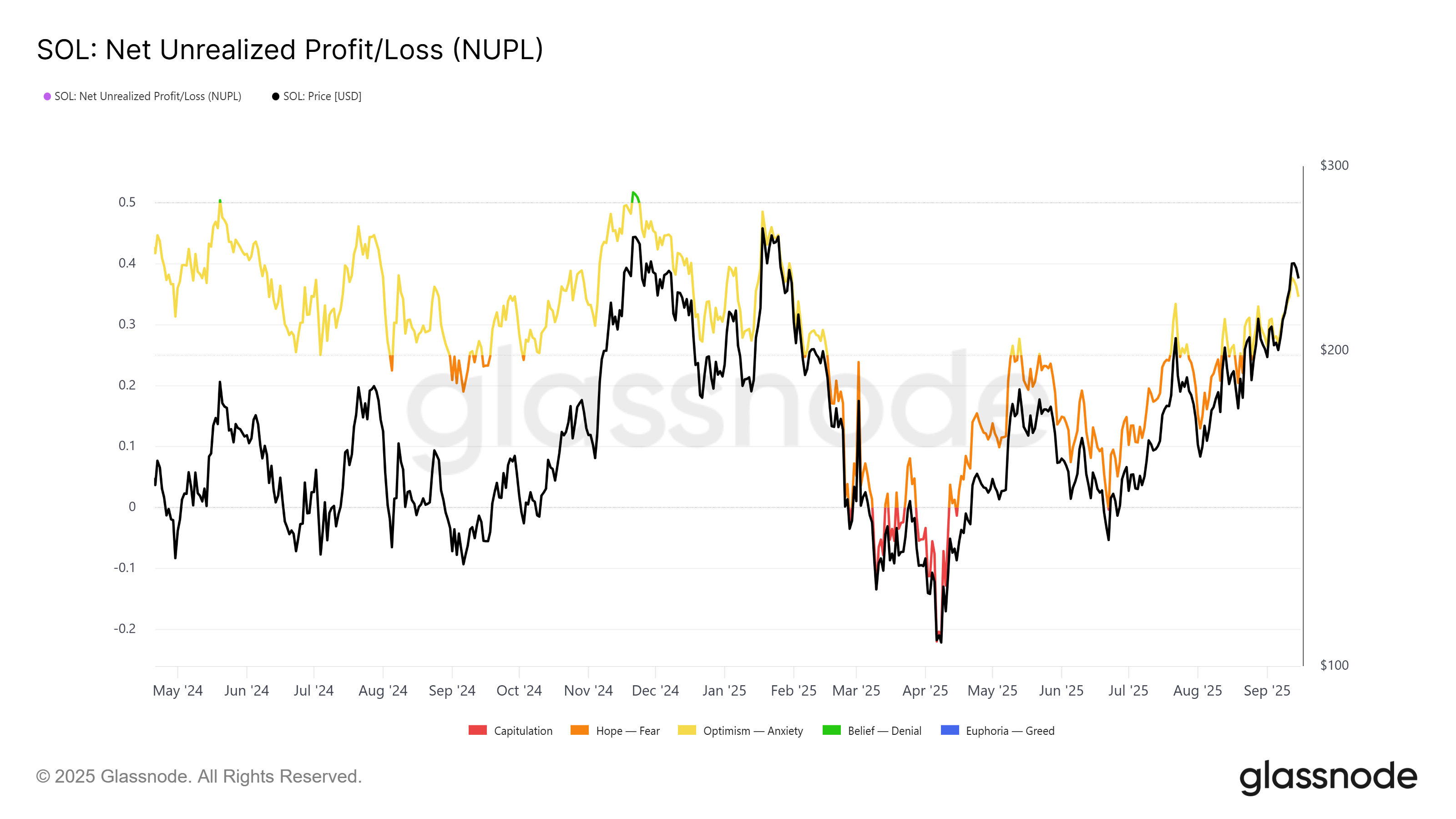 Այդ ընթացքում Solana-ի համար NUPL ցուցիչը ցույց է տալիս, որ կրիպտոարժույթը դեռ չի հասել հագեցվածության կետին։ Պատմականորեն՝ 0,5 մակարդակի «Վստահություն-Մերժում» շեմին շարժվելը հաճախ նախանշել է շրջադարձ, որն էլ հաջորդող շաբաթներին բերել է երկարատև շտկումների։